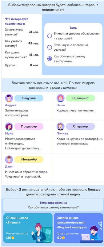 1 задание: Выбери тему ролика, которая будет наиболее интересна подписчикам. Что интересует подписчиков: