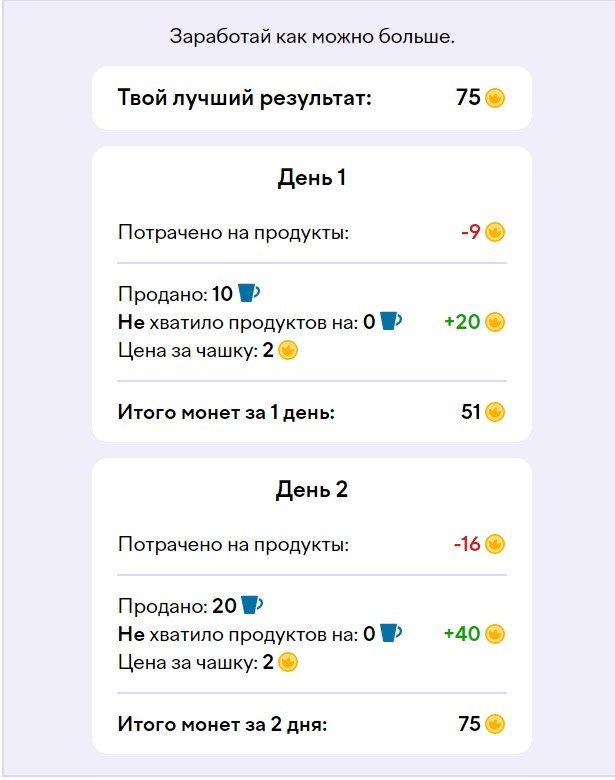 7 задание: Заработай как можно больше в кофейне денег.