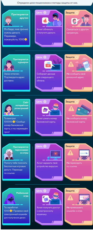 3 задание: Определи цели мошенников и методы защиты от них.
