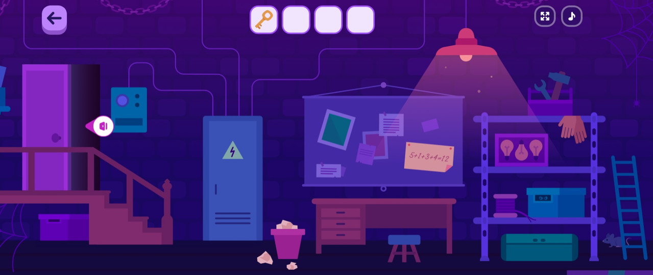 Двигаем стрелочки и как только находится нужный режим, в комнате появляется свет. Нужно было включить ровно 12 вольт. Видно пропавшие декорации. Рядом висит одежда, кликаем ее и находим ключ. Видим дверь, написано на ней — Комната электрика. Нажимаем, открываем, заходим.