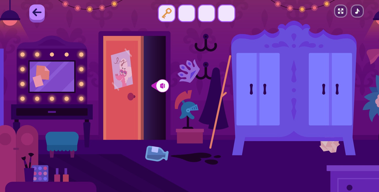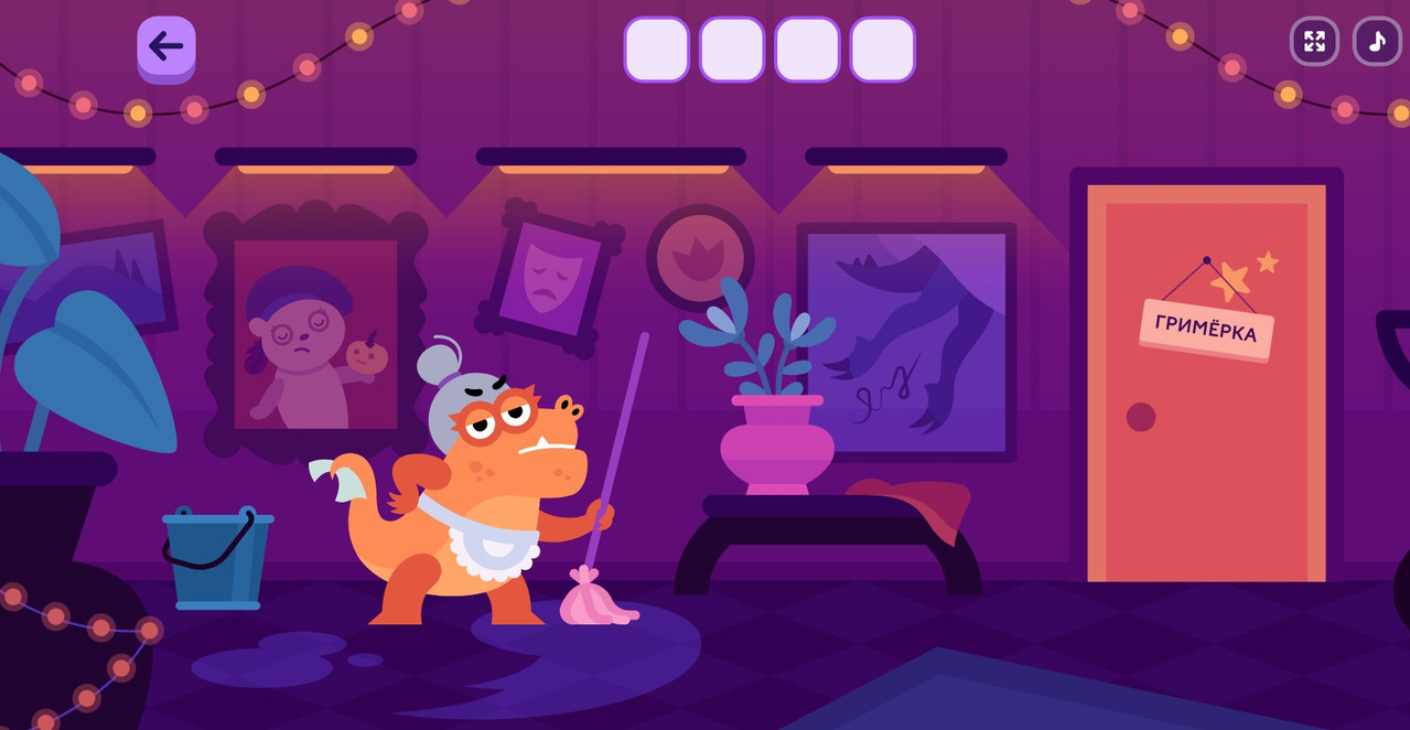 Там находим дверь, где написано — «Гримерка», ключ обычно прячут под дверью. Дергаем дверь, она заперта. Но сверху показался ключ. Дергаем еще и еще дверь до тех пор, пока ключ не упадет. Открываем дверь, заходим.