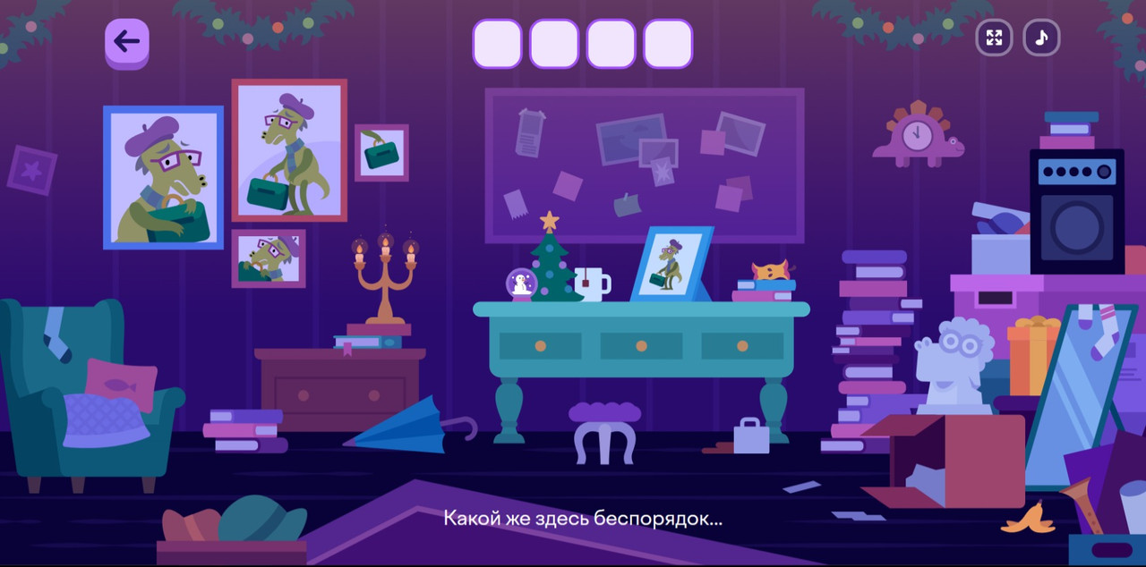 Декорация опускается и на месяце мы находим первую улику — желтая перчатка. Забираем ее. На этом первый день закончен. Ждем день второй. Как только его пройдем, мы разместим здесь дальнейшее прохождение этого детектива.