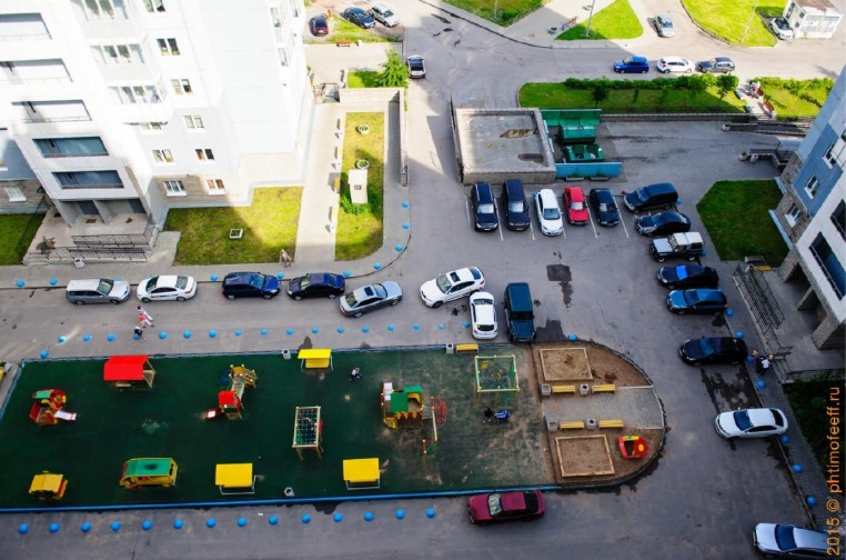 2. Обустройство подземной или многоуровневой парковки под газоном или детской площадкой, с вентиляцией выбросов через фильтры и удалённо от окон.