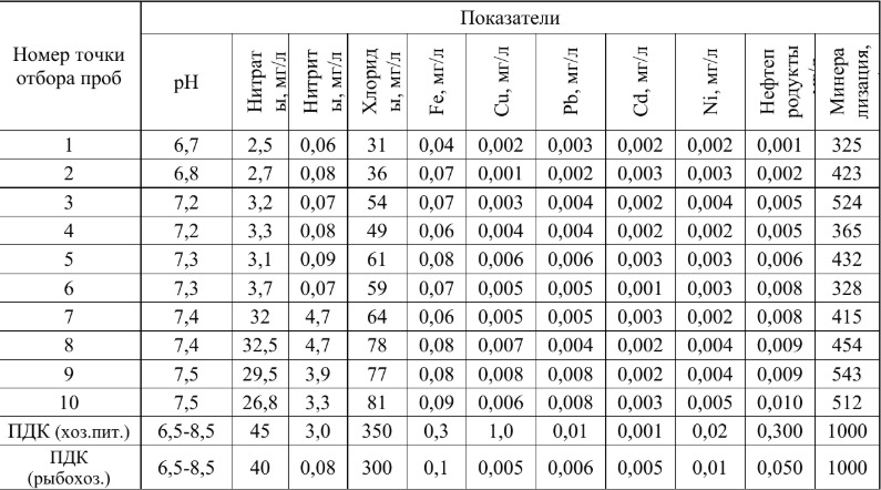 В хозяйственно-питьевых целях ни в одном из пунктов вода не соответствует нормативам из-за превышения ПДК по Pb и Cd.