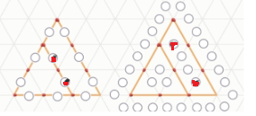 Переложите 2 спички так, чтобы можно было насчитать ровно 3 треугольника. На левой картинке выберите ровно две спички, которые хотите убрать. На правой картинке укажите новое положение для этих спичек. Лишних спичок быть не должно.