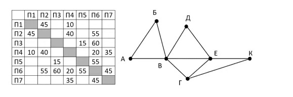 Так как таблицу и схему рисовали независимо друг от друга, то нумерация населённых пунктов в таблице никак не связана с буквенными обозначениями на графе. Определите длину кратчайшего пути из пункта Д в пункт Г. В ответе запишите целое число.