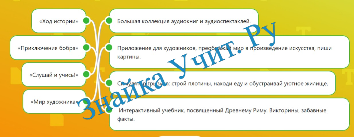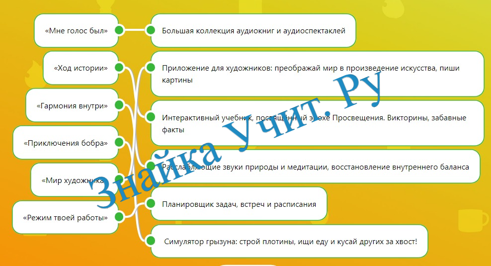 12. Разработчик перепутал названия и описания приложений. Исправь его ошибку, совмести название приложения с его описанием. Помни, что название должно как можно точнее отражать назначение и функции приложения.