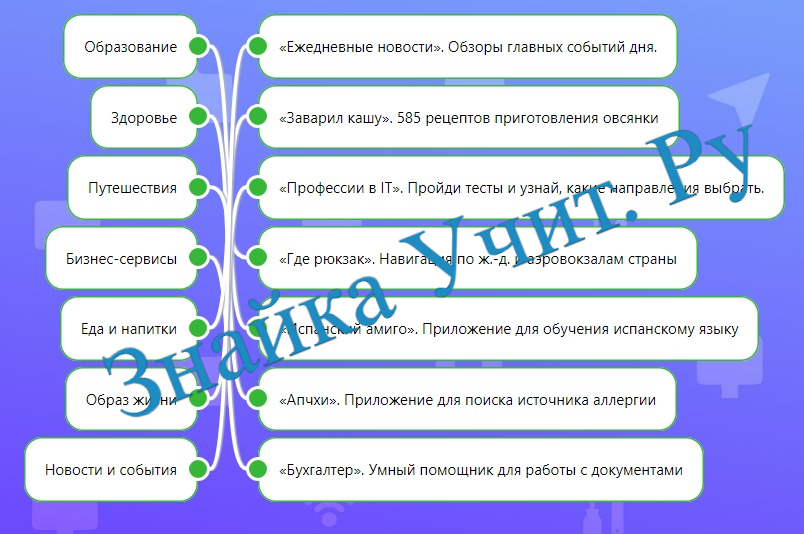 4. Ты публикуешь новые приложения, твоя задача — указать, к какой сфере они относятся.