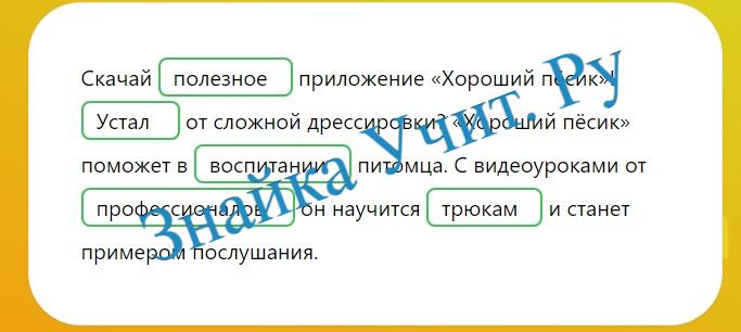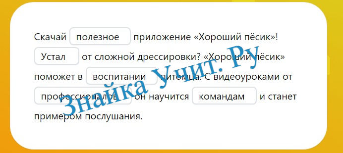 Приложение, для которого ты создаёшь текст, называется «Хороший пёсик» и содержит уроки по дрессировке собак