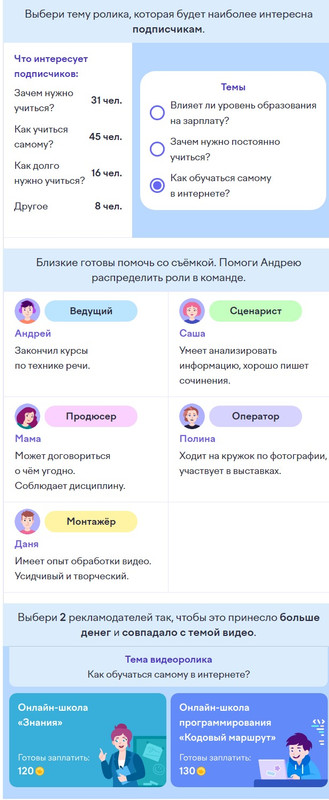 1. Видеоблогинг. Выбери тему ролика, которая будет наиболее интересна подписчикам и собери правильную команду.