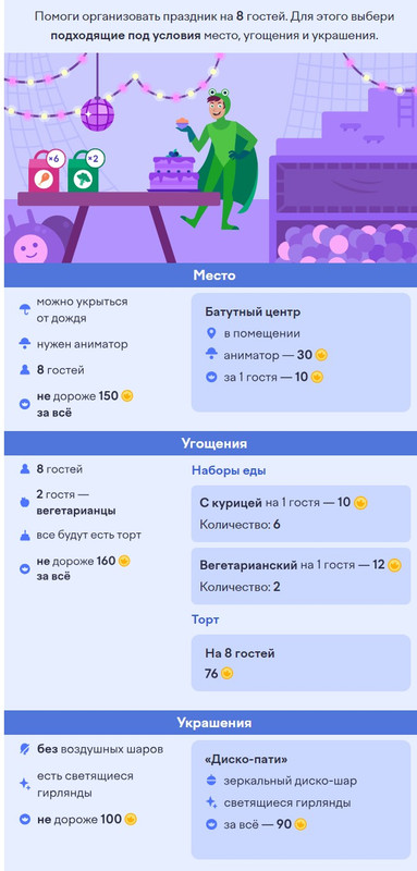 2. Праздник с умом. Помоги организовать праздник на 8 гостей. Обязательно читай условие, которые необходимы для этого праздника.