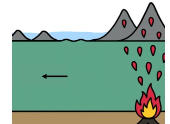 29. Нейросеть нарисовала схему по запросу «процесс формирования Гавайских островов в динамике». Направление чего показывает стрелка?