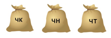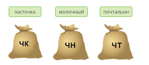 9. Разложи слова с буквосочетаниями ЧК, ЧН, ЧТ в мешки: