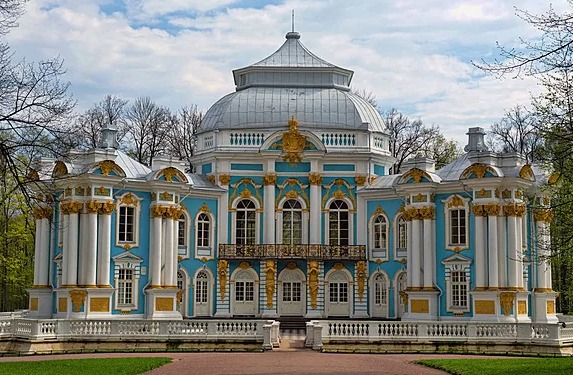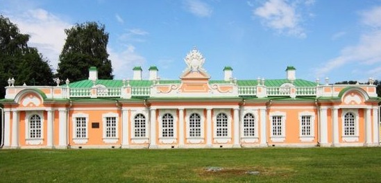 Кусковский дворец создавали по проекту французского архитектора Шарля де Вайи «под смотрением» московского архитектора Карла Бланка. Фасад здания покрасили в розовый цвет, который в XVIII веке назывался очень поэтично.