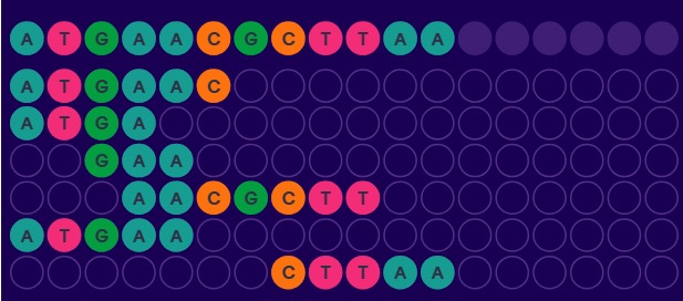 Собери самый короткий код. Расставь все кусочки на поле так, чтобы одинаковые буквы оказались друг под другом.
