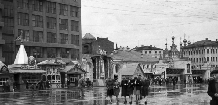 5. Узнаете это место с павильонами, которое запечатлели в дни празднования 800-летия Москвы?