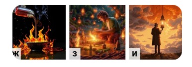 Укажите ОБЩЕЕ слово в начальной форме, которое встречается во всех трёх фразеологизмах, представленных на картинках Ж-И. — масло в огонь подливать, играть с огнем, днём с огнём не сыскать — Огонь