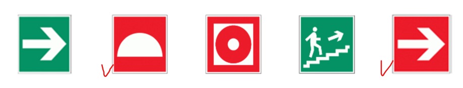 11. Выберите знаки для обозначения «Место размещения нескольких средств противопожарной защиты направо».