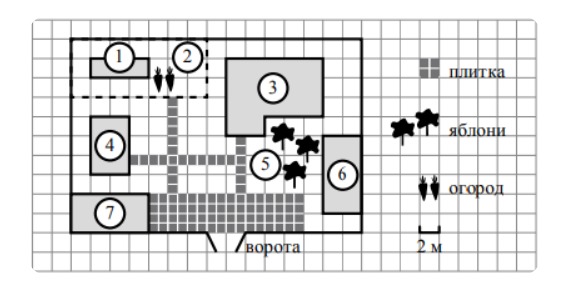 4. Найдите расстояние от ворот до сарая (расстояние между двумя ближайшими точками по прямой) в метрах.