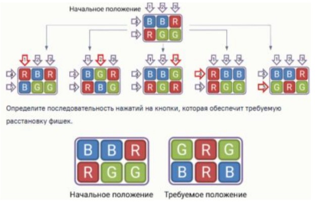 Определите последовательность нажатий на кнопки, которая обеспечит требуемую расстановку фишек.