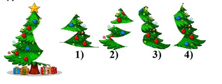 №6. Друзья делали аппликацию ёлочки. Выберите недостающую часть, которую нужно приклеить друзьям.