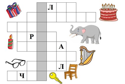 №1. Разгадайте кроссворд, подставив в соответствующие строки изображенные предметы, и вы получите ключевое слово.