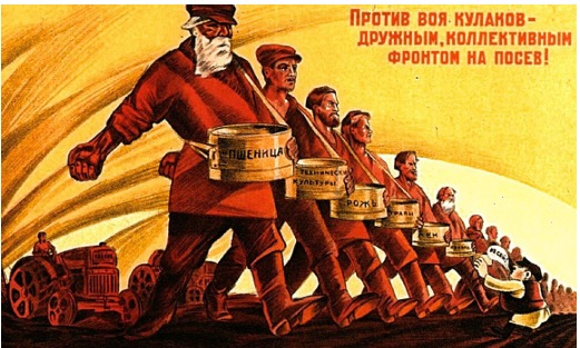 5) На плакате в аллегорической форме показано противопоставление колхозов и собственников крупных личных подсобных хозяйств.