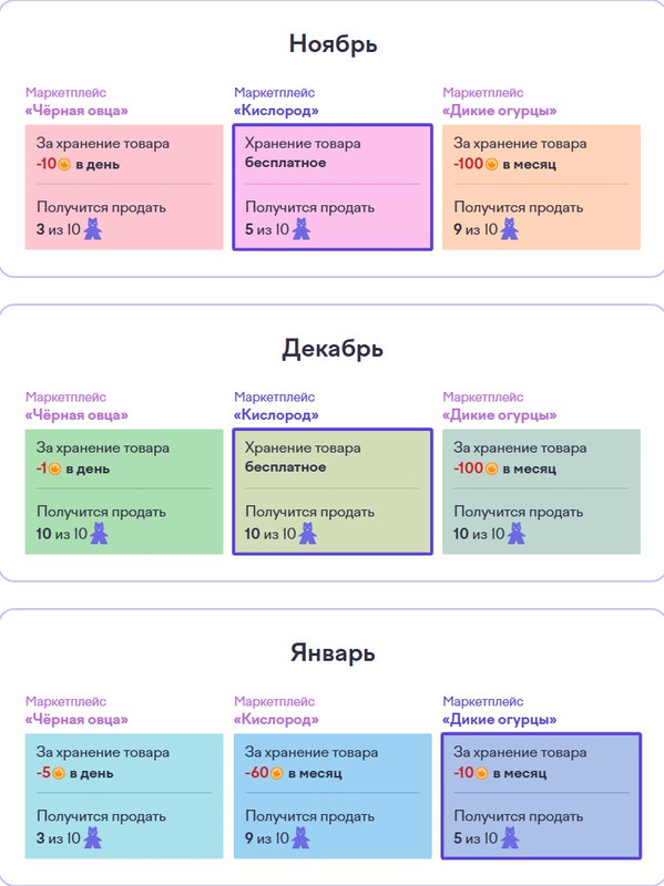5 задание: Продаем в интернете. Сравни условия и выбери самый выгодный маркетплейс для продажи фигурок. Цена одной фигурки 10 монет. Надо внимательно читать, какой маркетплейс выгоден для вас. Например я январе выгодно отдать 10 монет на месяц, чем 5 монет в день.
