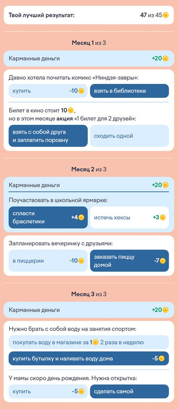 3 задание: Правило накопления. Лиза хочет накопить 45 на укулеле. Используй правила накопления и помоги Лизе достичь цели за 3 месяца. Задание так же не сложное. Пройти его самостоятельно, не составит труда. Главное смотрите, что для вас будет выгодно.