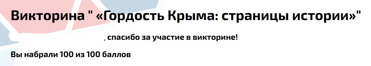 Викторина была пройдена самостоятельно, набрано 100 баллов из 100 возможных.