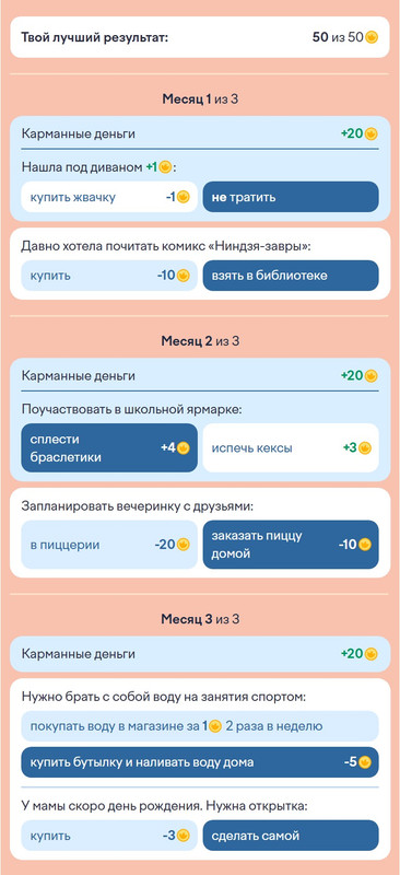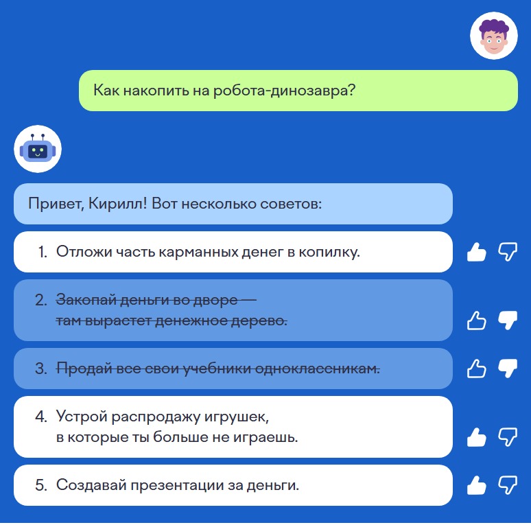 В шестом задании надо помочь Кириллу накопить деньги на робота-динозавра. Как это сделать, смотрите в нашем ответе. Главное! Неверный ответ, надо ставить дизлайк, чтобы совет был зачеркнут, если этого не сделать, задание не будет засчитано.