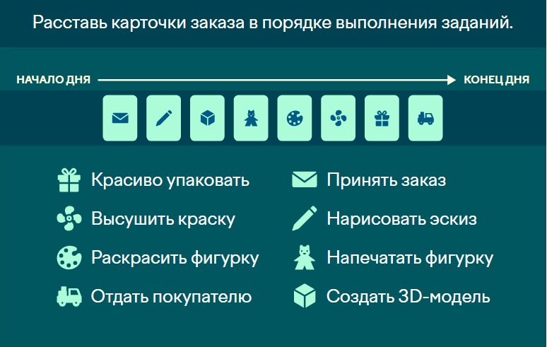 И наконец переходим к восьмому заданию, где вам надо расставить правильно карточки, в порядке выполнения заданий. Здесь тоже все просто.
