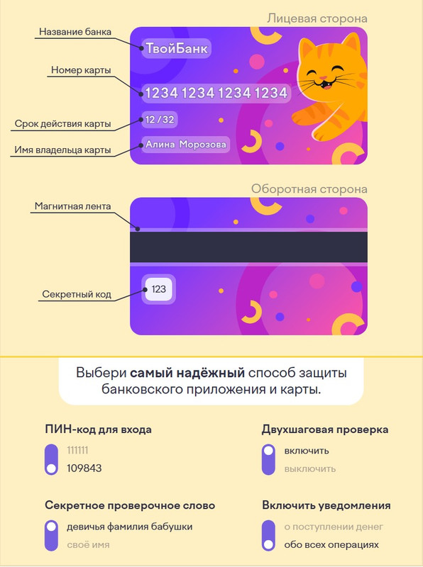 Второе задание связано с банковской картой. Здесь все легко и просто. Просто надо определить и верно назвать обозначения на карте.